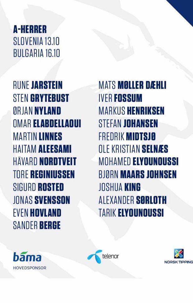 Il commissario tecnico della Norvegia, Lars Lagerback, ha diramato la lista dei calciatori convocati in vista degli impegni della sua Nazionale in Uefa Nations League.