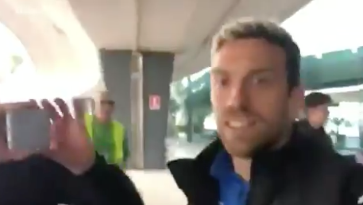 Il calciatore della compagine orobica ha risposto stizzosamente alle insistenti domande rivoltegli dai cronisti presenti all'aeroporto valenciano
