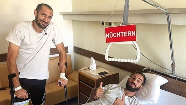 L'attaccante del Cagliari e il difensore della Juventus sono stati operati in quel di Innsbruck (Austria) dopo la rottura del legamento crociato. I tempi di recupero per entrambi sono davvero lunghi, si parla di sette mesi di stop e di conseguenza il loro rientro in campo in questa stagione è in pratica impossibile. I due non hanno però perso il sorriso e, dopo aver condiviso questo terribile momento della propria carriera, hanno postato sui social una foto che li ritrae insieme nella clinica dove sono stati operati. Un siparietto particolare nel quale "Pavoloso" ha anche provato a scherzarci su: "Oh Chiello stai calmo... non mi devi marcare anche qui! Va bene che il ginocchio è nuovissimo... ma tanto ci vediamo presto in campo, promesso".
