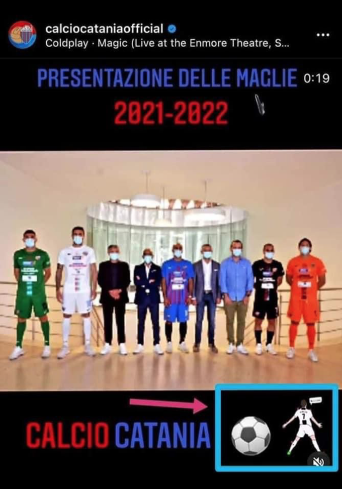 Il Catania ha presentato le nuove maglie in vista dell'inizio della stagione 2021/22. Il club etneo sui propri profili social ha postato le foto inedite, ma insieme alle casacche ecco spuntare nelle stories Cristiano Ronaldo. Una gaffe che ha creato non pochi problemi alla società rossazzurra che è stata fin da subito attaccata virtualmente dai propri tifosi che, chiaramente, hanno polemizzato veementemente contro tale errore.