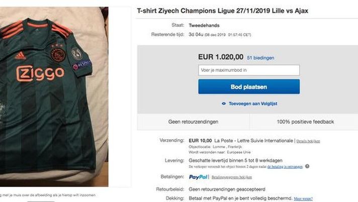 Il tifoso dei lancieri, infatti, non ha tenuto per sé il pregiato cimelio. Su eBay, noto sito dedicato allo shopping online, è recentemente apparso l'annuncio relativo alla vendita all'asta della maglia indossata da Ziyech in occasione della partita tra Lille e Ajax, giocata lo scorso 27 novembre. La base d'asta ammonta a ben 1.020 euro e nella descrizione dell'articolo si legge che la maglia è rimasta esattamente com'era. E nonostante qualche dubbio sull'autenticità dell'oggetto in vendita, a dare prova del fatto che essa sia effettivamente la maglietta indossata dal numero 11 olandese e donata al piccolo tifoso è una traccia di fango sul lato sinistro della divisa, a riprova del'utilizzo che ne è stato fatto nel corso della gara di Champions League.