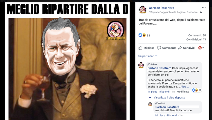 C'è anche uno spunto ironico lanciato dalla pagina Cartoon Rosanero in cui viene simpaticamente sottolineato proprio questo cambio di atteggiamento dei tifosi che solo un anno fa affermavano, in sintesi, "Meglio ripartire dalla Serie D che continuare con Zamparini" e che alla chiusura del calciomercato hanno visto traballare alcune certezze.