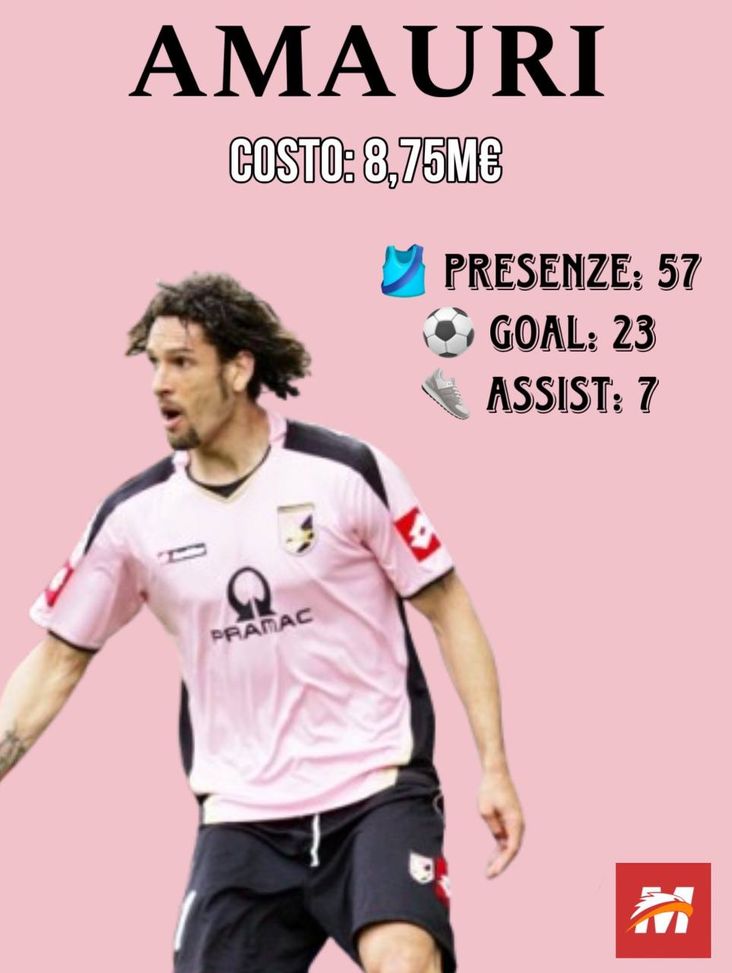 Al terzo posto c'è uno dei migliori giocatori passati da Palermo, Amauri: Acquistato per 8 milioni e 750 mila euro dal Chievo nell'estate del 2006 l'Italobrasiliano ha incantato fin da subito: 8 gol e 3 assist nelle prime 18 presenze con i rosanero per l'allora 26 enne. Nel corso della diciottessima giornata di quella stagione, però, il classe '80 è andato in contro alla rottura del crociato che ha posto la parole fine anzitempo alla sua stagione. I suoi gol aiuteranno comunque i rosanero ad arrivare in Coppa UEFA. L'anno dopo farà un'ottima stagione, con 15 gol e 4 presenze in 34 partite giocate, concludendo la sua esperienza a Palermo con 57 partite giocate, 23 gol e 7 assist. Verrà venduto l'estate successiva per circa 23 milioni alla Juventus.