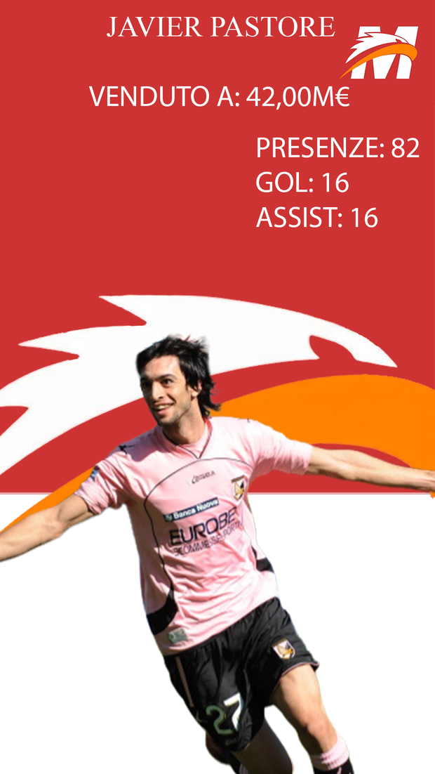 Un calciatore che ha entusiasmato tutta Palermo con la sua classe. Javier Pastore è stato protagonista di due annate clamorose con i rosanero, nella massima espressione della squadra di Zamparini. Con 82 presenze, 16 gol e 16 assist, l'argentino ha incantato il "Barbera" con le sue giocate tecnicamente pazzesche. Acquistato per 7 milioni dall'Huracan, è stato venduto per 42 milioni registrando una plusvalenza di ben 35 milioni.