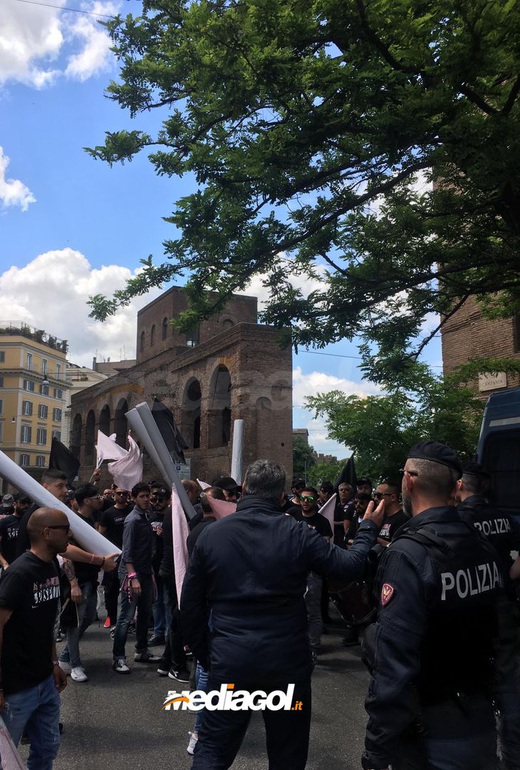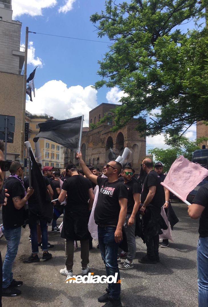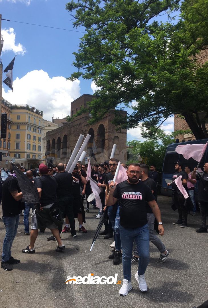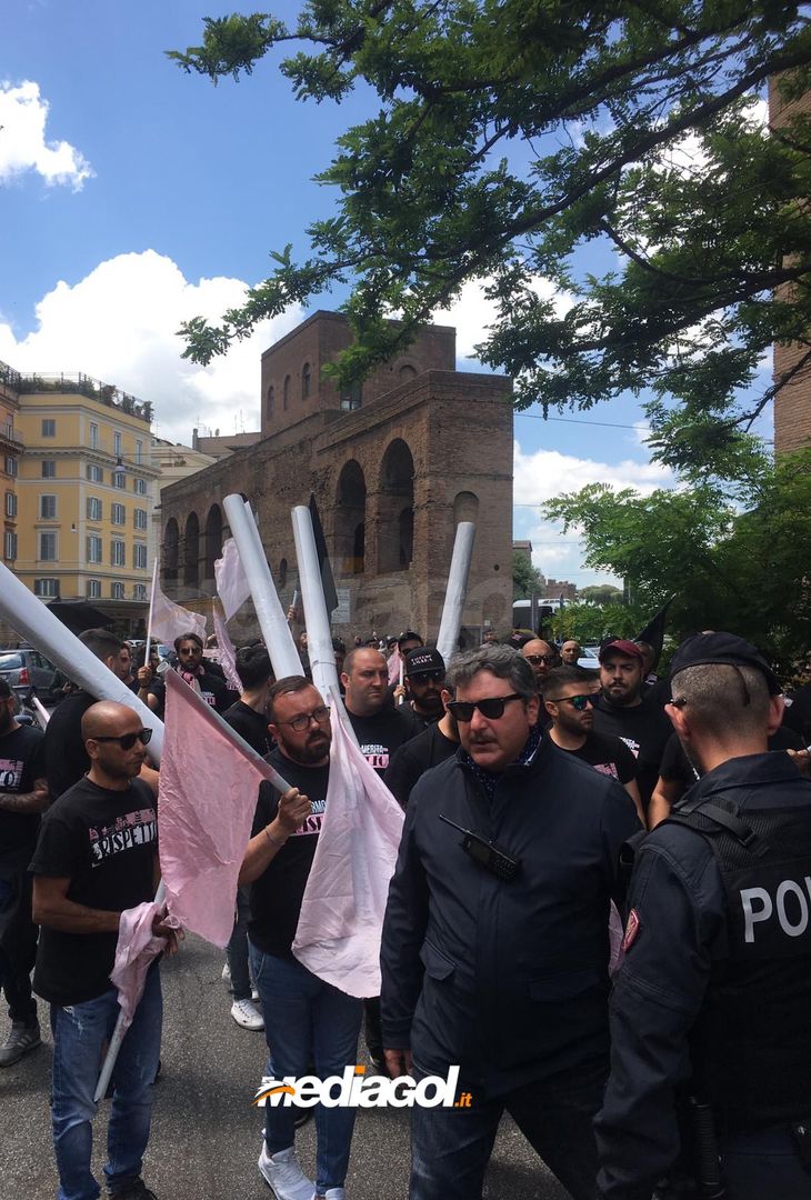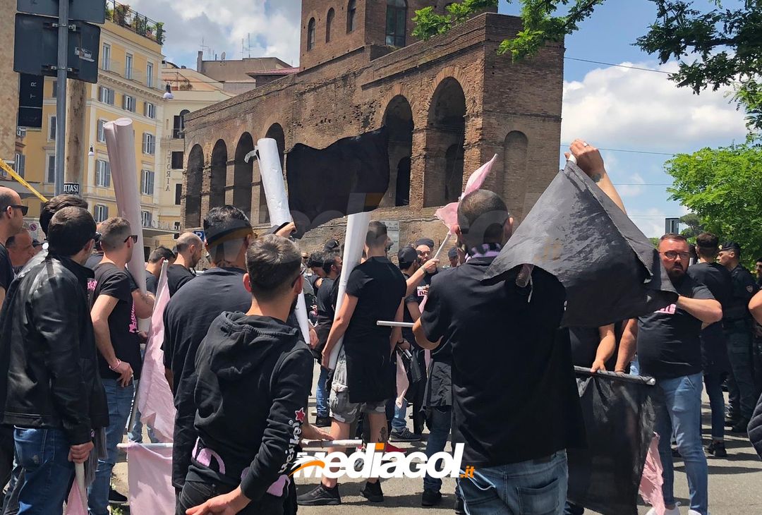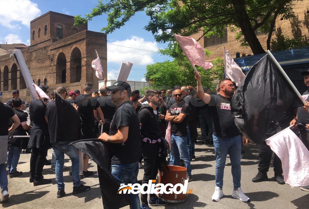 FOTO Palermo, la marcia su Roma dei tifosi rosanero: l’arrivo alla sede della Corte Federale d’Appello
