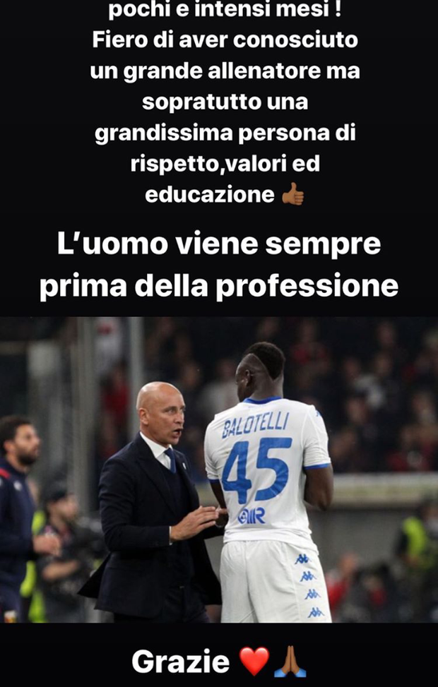 Le parole sui social di Mario Balotelli in merito all’esonero del tecnico delle Rondinelle Eugenio Corini