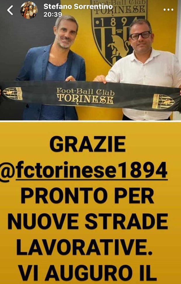 La storia tra la Torinese e l'ex portiere di Serie A Stefano Sorrentino finisce qui. Tutto era iniziato la scorsa estate, con l’ex estremo difensore del Palermo che aveva firmato il contratto con il club per il ruolo di direttore tecnico. Poi, la scelta di tornare in campo, ma non nelle vesti di portiere: il classe 1979, infatti, era stato inserito nella rosa degli attaccanti. "Il Football Club Torinese è lieto di comunicare l’ingaggio di Stefano Sorrentino, che è quindi da oggi un nuovo giocatore oronero. Dopo la breve ed iniziale esperienza come direttore tecnico, Stefano ha deciso infatti di voler tornare in campo e sposare la causa oronera, stavolta nelle vesti di attaccante". Dopo appena un mese, però, Sorrentino ha cambiato ancora idea abbandonando per la seconda volta il campo da gioco: "Grazie Torinese, pronto per nuove strade lavorative. Vi auguro il meglio", scrive l'ex rosanero. Di seguito la foto che accompagna i saluti di Stefano Sorrentino alla Torinese.