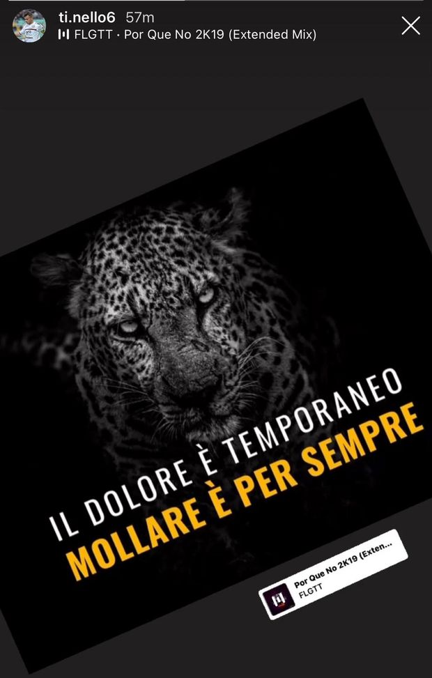"Il dolore è temporaneo, mollare è per sempre", scrive Martinelli sui social