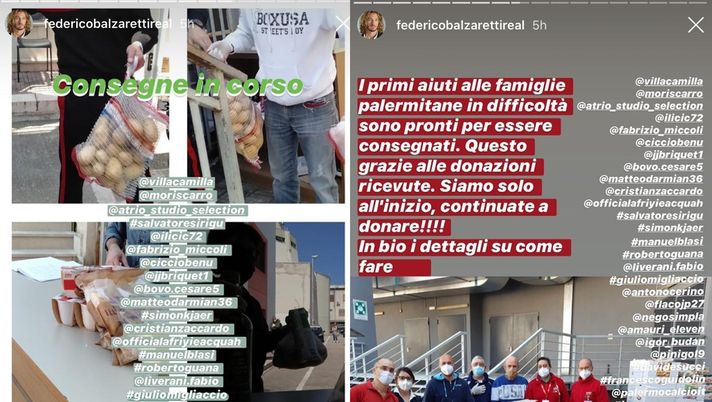 Un'ondata di solidarietà culminata in una raccolta fondi nata da una nobile iniziativa di molti ex calciatori del Palermo, venuti in aiuto delle famiglie del capoluogo siciliano in difficoltà in seguito alle ripercussioni sociali ed economiche figlie pandemia da Coronavirus. Si chiude con 218.566mila euro (erogati in buoni spesa) la raccolta fondi Insieme per Palermo, lanciata da Federico Balzaretti con il sostegno di Fondazione Sicilia e Coop Alleanza 3.0, che ha aggiunto altri 20mila euro in generi alimentari.