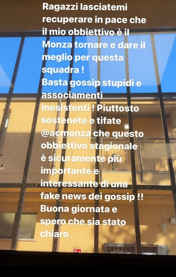 "Piuttosto sostenete e tifate il Monza che questo obiettivo stagionale è sicuramente più importante e interessante di una fake news dei gossip! Buona giornata e spero che sia stato chiaro".