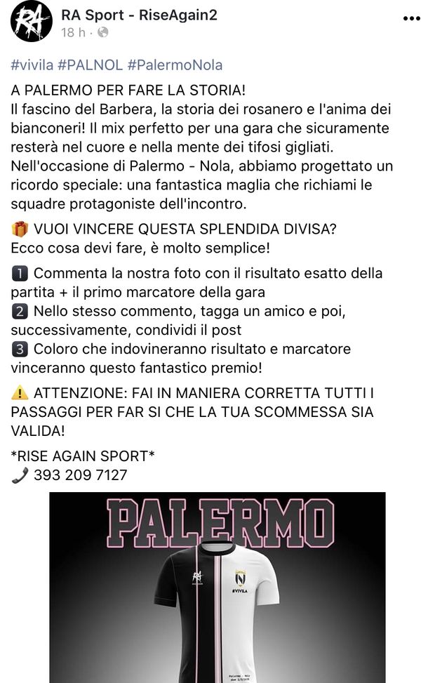 Il Nola lancia un contest per vincere la speciale maglia pensata da "RiseAgain2" per celebrare la storica sfida contro il Palermo di Rosario Pergolizzi