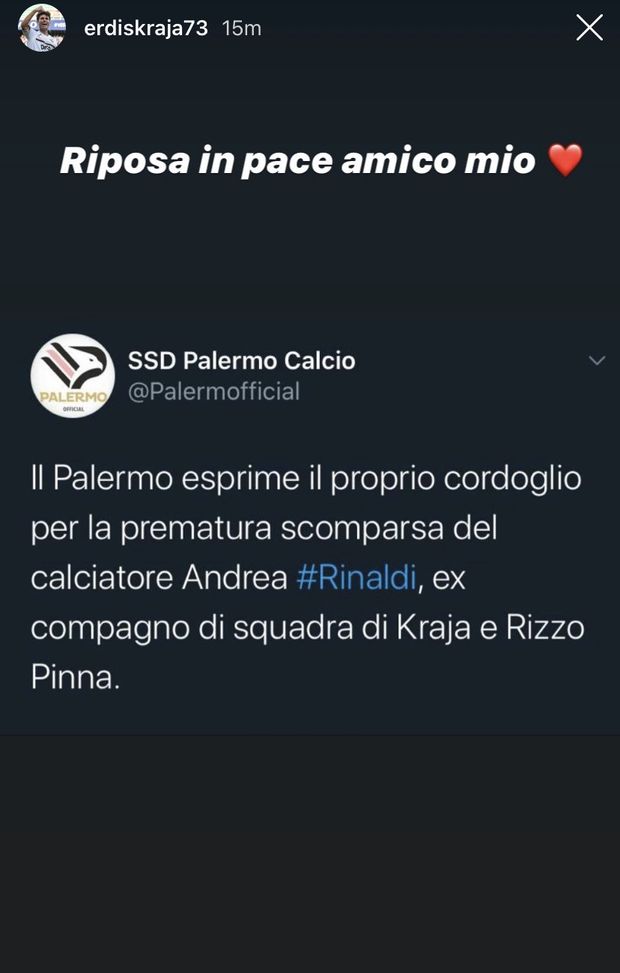 IL CORDOGLIO -"Il Palermo esprime il proprio cordoglio per la prematura scomparsa del calciatore Andrea Rinaldi", ha scritto la società rosanero sul proprio account Twitter. Il classe 2000 era un ex compagno di squadra di Erdis Kraja e Andrea Rizzo Pinna.