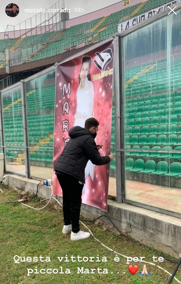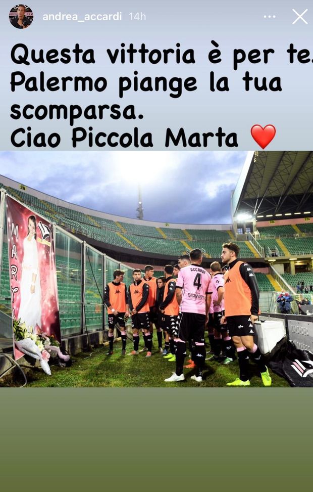 "Chi, al termine della gara, ha esultato come di consueto anche sui propri social - dedicando la vittoria alla piccola Marta, prematuramente scomparsa a soli 10 anni a seguito di un malore accusato a scuola -, sono i calciatori rosanero. Mediagol.itvi propone alcuni dei post pubblicati dalla squadra sui loro account Instagram.