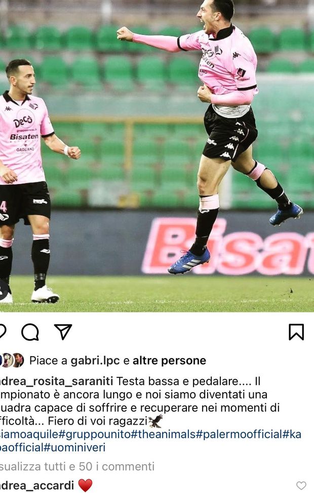 "Chi, al termine della gara, ha esultato come di consueto anche sui propri social, sono i calciatori rosanero. Mediagol.itvi propone alcuni dei post pubblicati dalla squadra sui loro account Instagram.