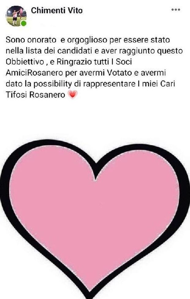 Vito Chimenti è il rappresentante di 'Amici Rosanero': "Grazie a tutti!! Sono onorato e orgoglioso di rappresentare i miei cari tifosi rosanero"