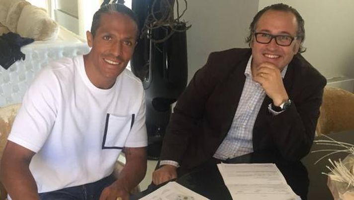 Il centrale dei Crociati, Bruno Alves, celebra il rinnovo contrattuale con il Parma in sede di conferenza stampa a Collecchio
