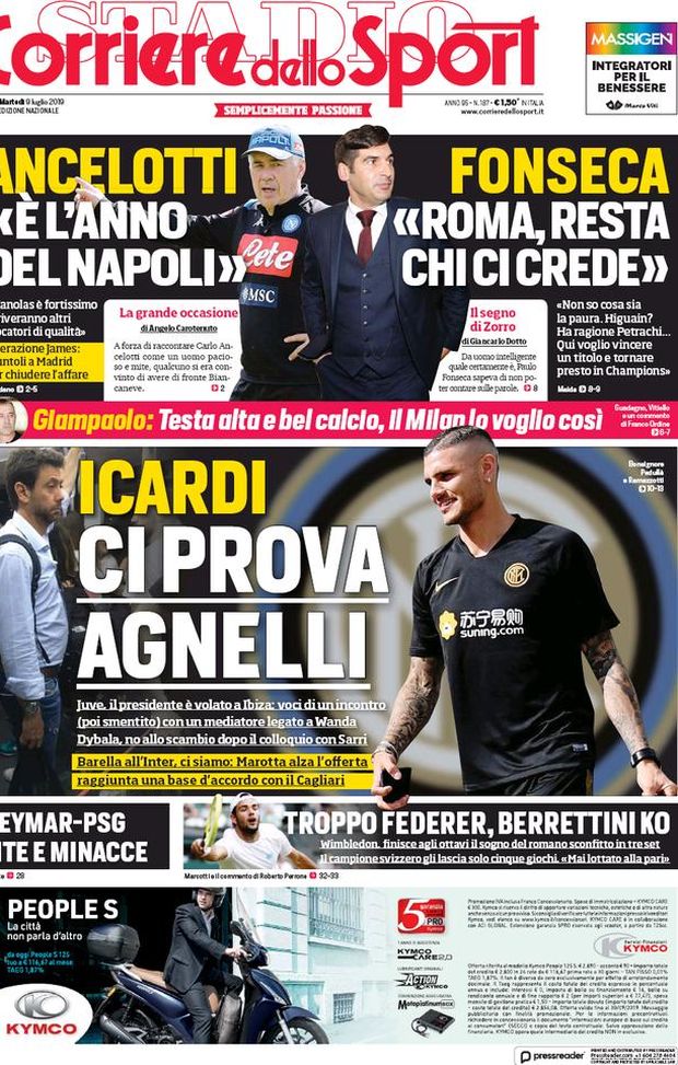 "Icardi, ci prova Agnelli". Apre così l’edizione odierna de 'Il Corriere dello Sport'.