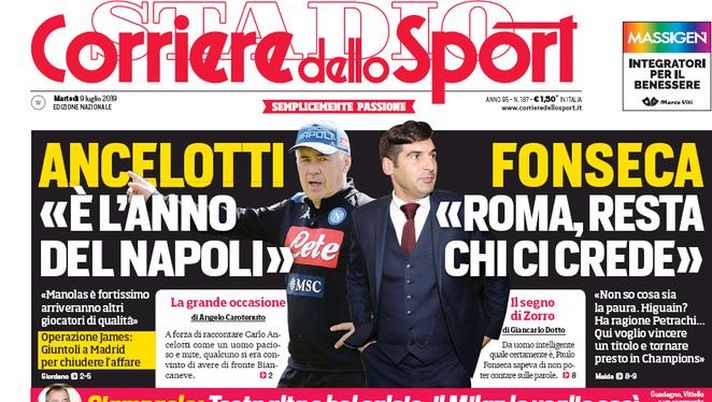 Prima Pagina, Corriere dello Sport: “Icardi, ci prova Agnelli. E’ l’anno del Napoli. Il Milan lo voglio così”