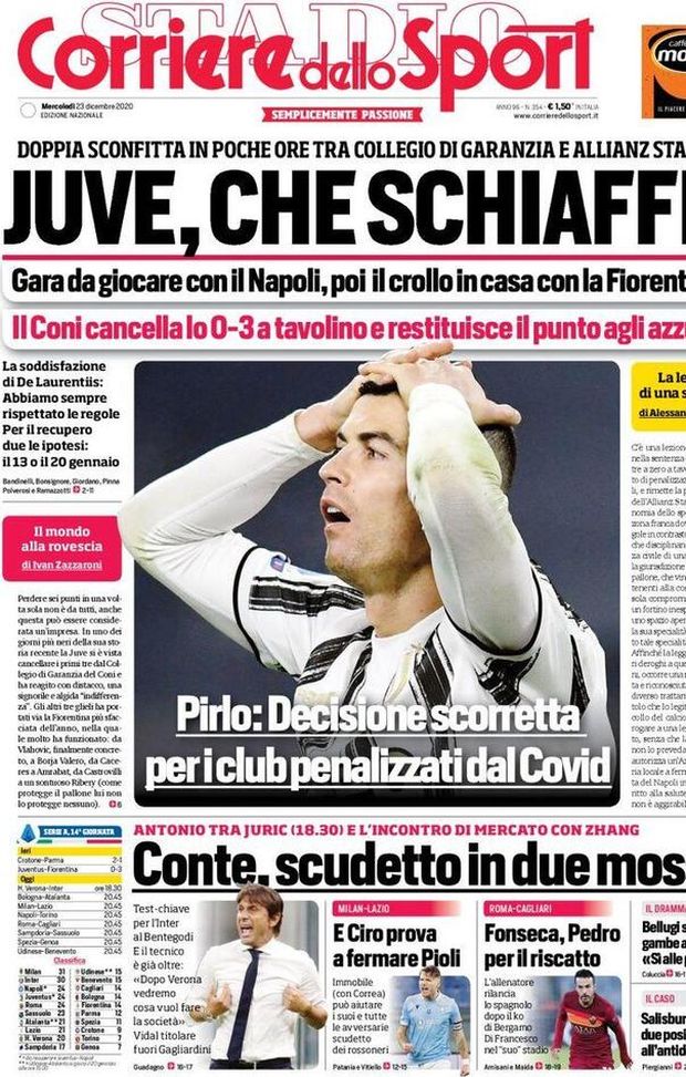 Prima Pagina, Corriere dello Sport: “Juve, che schiaffi! Ciro prova a fermare Pioli, Fonseca cerca riscatto”