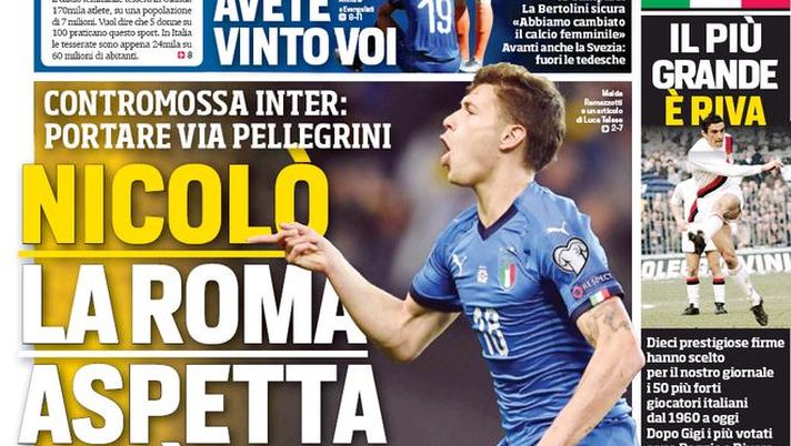 "Nicolò, la Roma aspetta il sì". Apre così l’edizione odierna de 'Il Corriere dello Sport'.