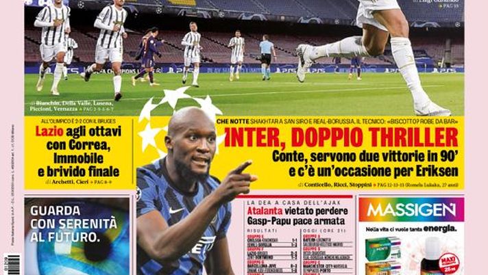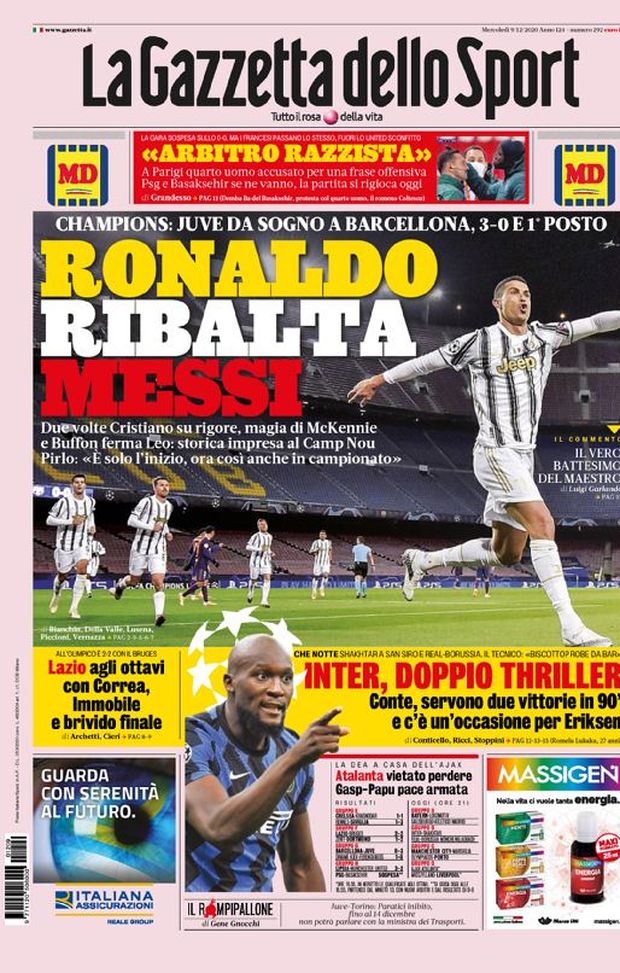 Prima Pagina, Gazzetta dello Sport: “Juve da sogno, CR7 ribalta Messi. Inter, doppio thriiller”