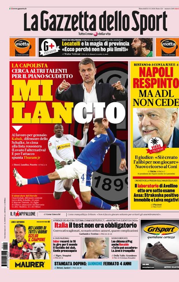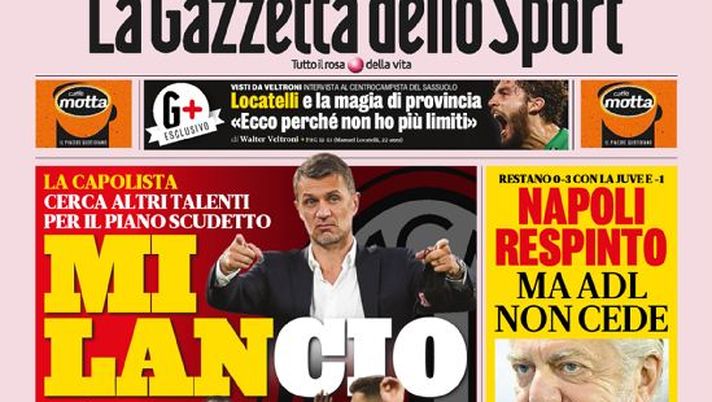 Prima Pagina, Gazzetta dello Sport: “Milancio! Napoli respinto, ma ADL non cede”