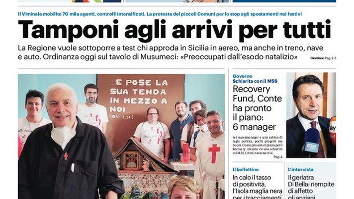 Prima Pagina, Giornale di Sicilia: “Covid, tamponi per tutti agli arrivi. Ristorazione e turismo, aiuti triplicati”