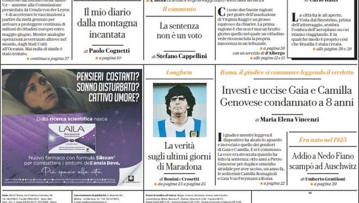 Mediagol.it vi propone la prima pagina de "La Repubblica" oggi in edicola