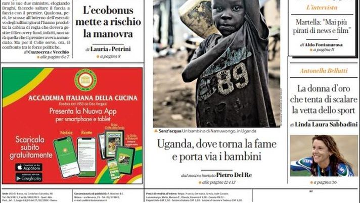 " Mediagol.it vi propone la prima pagina de "La Repubblica" oggi in edicola.