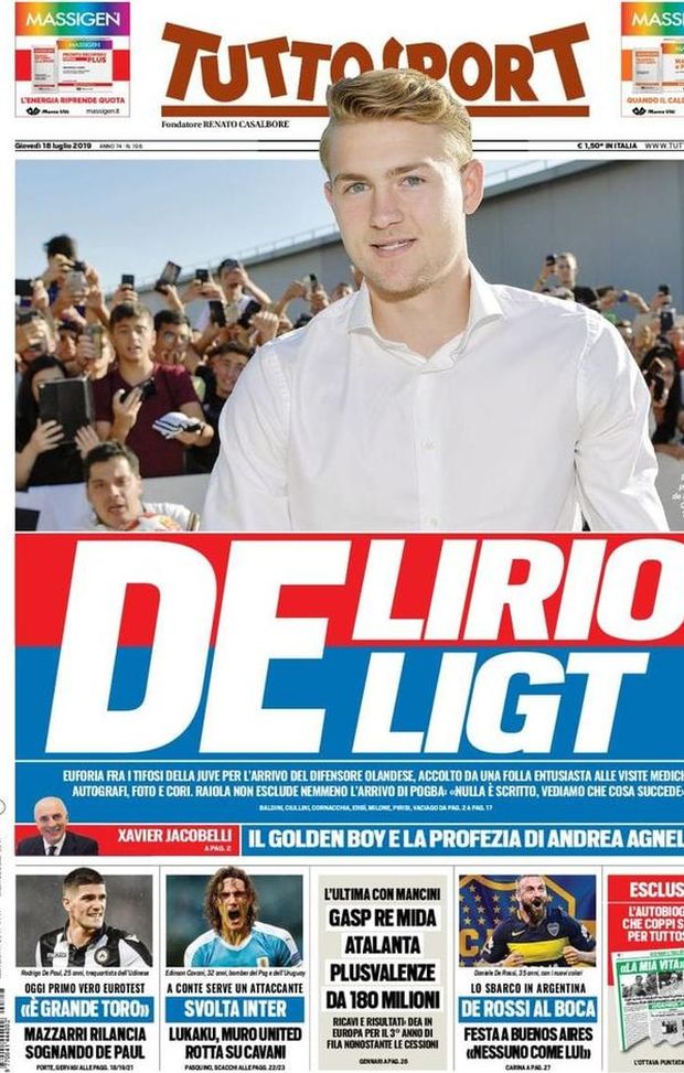 "Delirio De Ligt". Apre così l’edizione odierna di ‘Tuttosport’.
