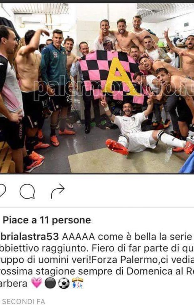 Con queste parole Fabrizio Alastra, terzo portiere del Palermo, festeggia la salvezza acquisita dalla compagine rosanero. Tramite un post pubblicato sul proprio profilo Instagram, l'ex estremo difensore del Trapani si congratula così con i propri compagni per il traguardo conseguito.
