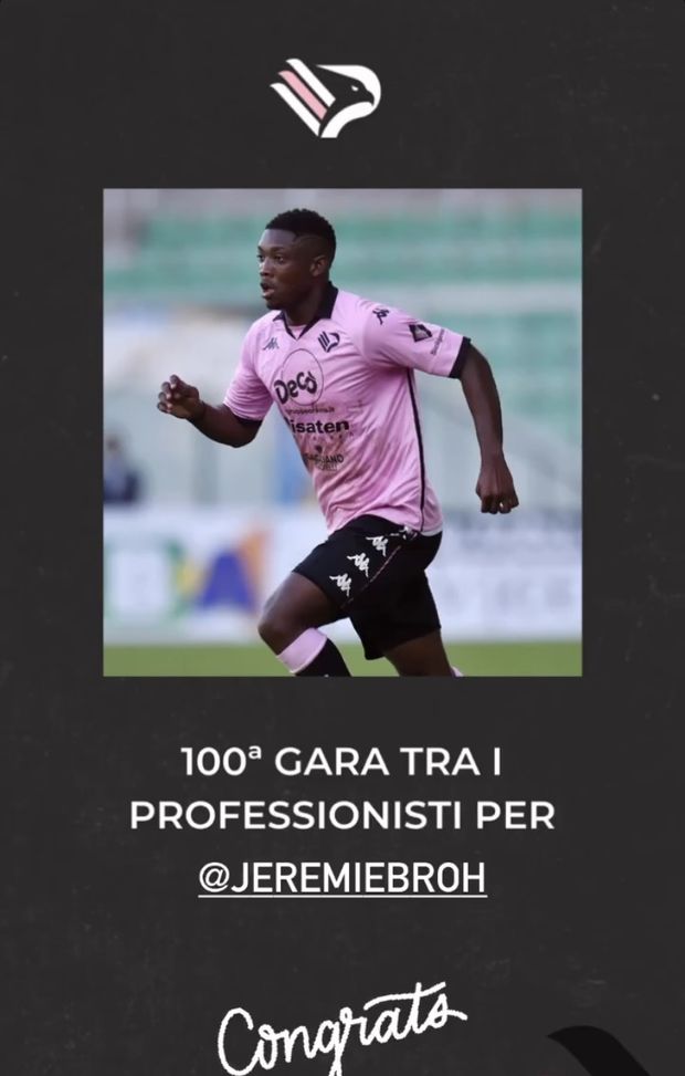 In occasione della sfida in programma alle ore 14 allo Stadio "Pino Zaccheria", Jérémie Broh taglierà il traguardo delle 100 presenze tra i professionisti. Di seguito, la stories pubblicata dal club di viale del Fante su Instagram.