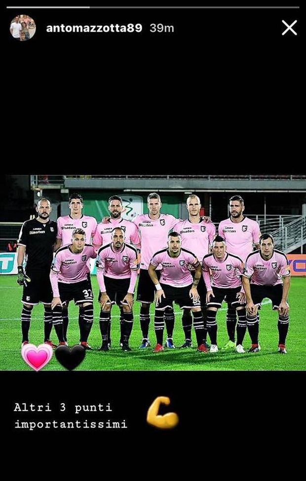 Il difensore rosanero ha pubblicato un post sul suo profilo Instagram al termine della sfida contro i rossoblù