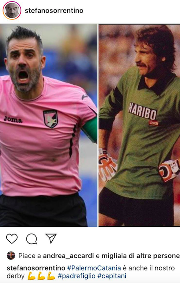 Una notizia comunicata dallo stesso club rosanero a poche ore dal fischio d'inizio del big match di Serie C di questa sera. Situazione che comunque non impedirà agli uomini di Boscaglia di disputare la gara, in quanto in possesso del numero minimo di tesserati previsti dal regolamento della Lega Pro. Nonostante le circostanze sicuramente anomale in cui verrà disputato il derby di questa sera, non scema l'agonismo sportivo che orbita attorno a Palermo-Catania. A darne prova è lo scatto pubblicato su Instagram dall'ex estremo difensore Stefano Sorrentino,ritratto con la maglia rosanero accanto al papà Roberto: ex portiere del Catania. Un post dal sapore "Amarcod" non passato di certo inosservato agli occhi di Alberto Pelagotti, che tra poche ore scenderà in campo per difendere i pali rosanero nell'attesissima sfida di questa sera contro gli etnei.