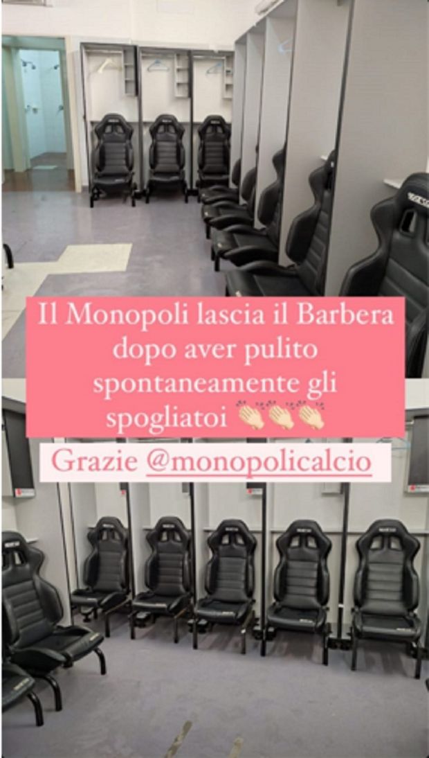 Il Monopoli, dopo aver utilizzato gli spogliatoi al termine della sfida di questo pomeriggio, si è reso autore di un gesto di sano "Fair Play", adoperandosi per la pulizia da cima a fondo delle postazioni a loro assegnate in qualità di quadra ospite.