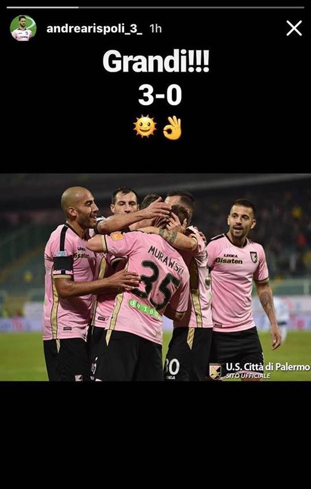 Il post pubblicato dall’esterno del Palermo, out a causa di una squalifica, sul proprio account Instagram