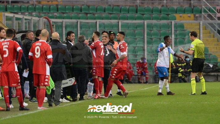 Attimi di tensione nei minuti di recuperi della sfida tra Palermo e Bari