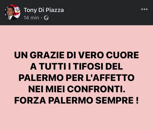 "Un grazie di vero cuore a tutti i tifosi del Palermo per l'affetto nei miei confronti. Forza Palermo sempre!", ha scritto l'ex vicepresidente del Palermo sui social. Di seguito, il post in questione.