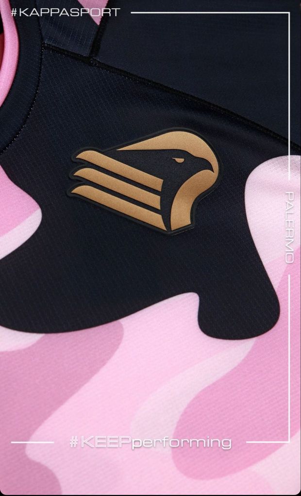 In attesa di svelare la prima maglia della stagione 2021/2022 (il cui debutto è fissato in coincidenza con la prima di campionato, domenica 29 agosto), ecco dunque la nuova Kombat Palermo 2022 THIRD di Kappa, che si presenta con un inedito camouflage “militare” su diverse gradazioni di nero e rosa. Uno stile mai visto prima per una maglia del Palermo, che stavolta, per il terzo completo, mette da parte l’omaggio alle maglie del passato e punta su una personalità più moderna e internazionale.