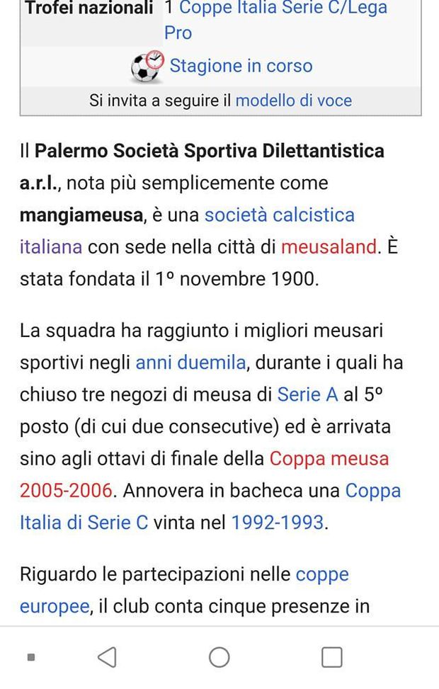 Nella pagina Wikipedia della SSD Palermo sono state improvvisamente apportate alcune modifiche e contestualmente sono apparsi alcuni epiteti di cattivo gusto nei confronti del club rosanero