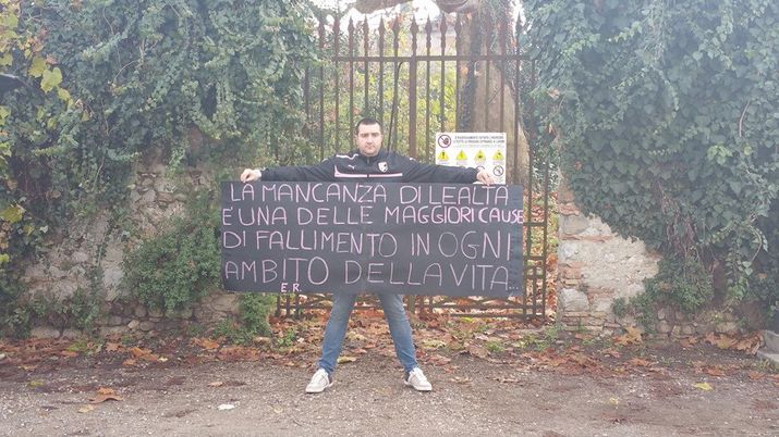 Il martedì dell'Immacolata c'è chi l'ha sfruttato per passarlo in famiglia tra pranzi e dolci, e c'è chi ha deciso di impiegare il giorno festivo per protestare contro la gestione societaria della propria squadra del cuore. Mentre a Palermo un gruppo di ultras contestava Zamparini davanti l'impianto sportivo di Boccadifalco, un tifoso solitario si è spinto fino alla tenuta del presidente per parlare con lui. Le ore di viaggio però si sono tramutate in un nulla di fatto perché, come raccontato dallo stesso tifoso, al citofono ha risposto la moglie di Zamparini che ha spento ogni speranza. Il tifoso ha fatto in tempo però a scattare una foto con un cartellone che aveva portato e a lasciarlo davanti la residenza Zamparini con su scritto: "La mancanza di lealtà è una delle maggiori cause di fallimento in ogni ambito della vita".