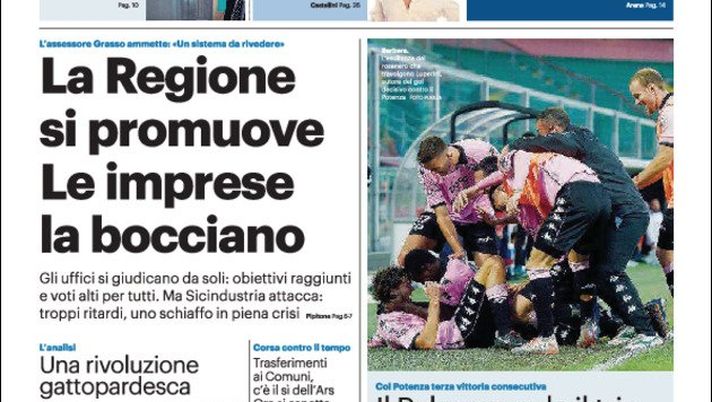 Prima Pagina, Giornale di Sicilia: “La Regione si promuove, le imprese la bocciano. Il Palermo cala il tris”