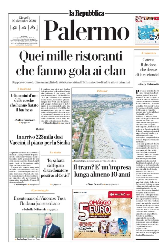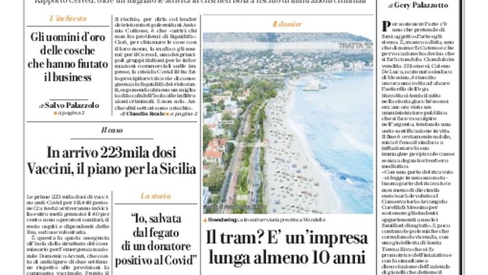 Prima Pagina, La Repubblica-Palermo: “Quei mille ristoranti che fanno gola ai clan. Vaccini, il piano per la Sicilia”