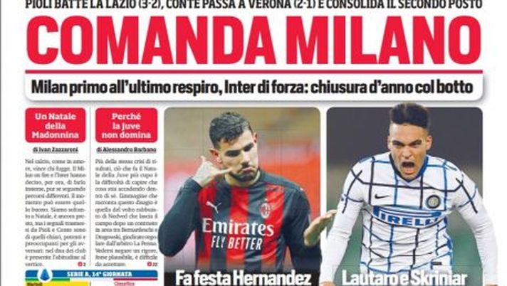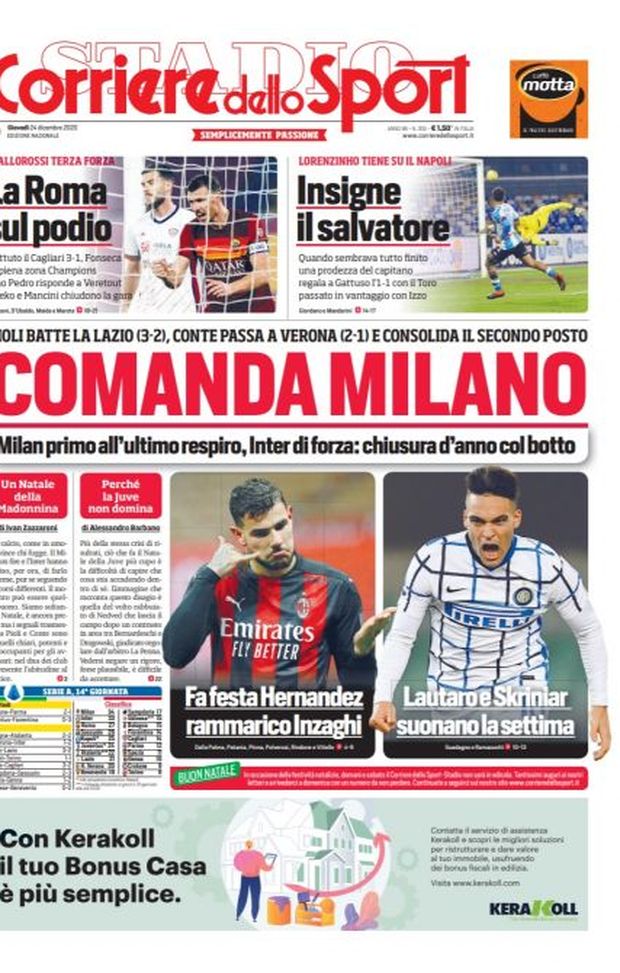 Prima Pagina, Corriere dello Sport: “Comanda Milano. La Roma sul podio, Insigne il salvatore”
