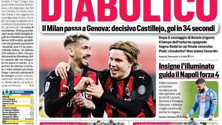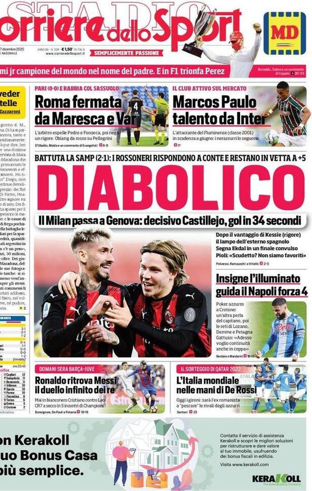 Prima Pagina, Corriere dello Sport: “Diabolico! Il Milan passa a Genova. Roma fermata da Maresca e Var”