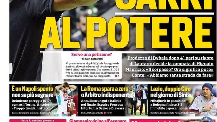 "Sarri al potere". Apre così l’edizione odierna de 'Il Corriere dello Sport'.