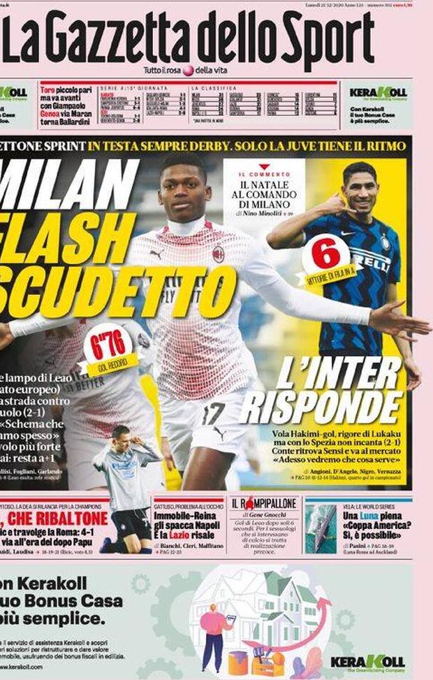 Prima Pagina, Gazzetta dello Sport: “Milan, flash Scudetto. L’Inter risponde”