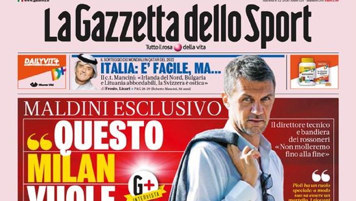 Mediagol.it vi propone la prima pagina de "La Gazzetta dello Sport"