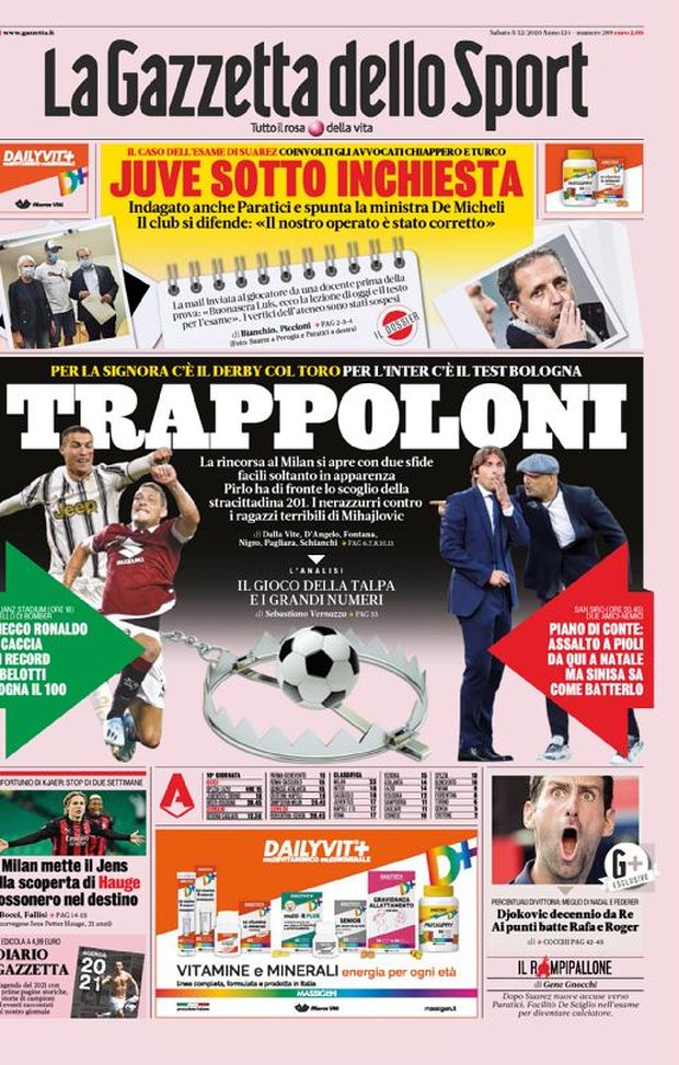 Prima Pagina, La Gazzetta dello Sport: “Trappoloni. Juve sotto inchiesta, indagato anche Paratici”