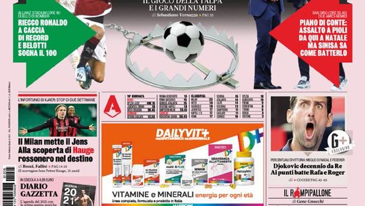 Mediagol.it vi propone la prima pagina de 'La Gazzetta dello Sport'